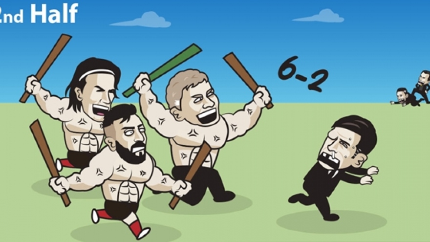 VOV.VN - Bộ đôi Bruno Fernandes và Cavani đóng góp dấu giày trong cả 6 bàn thắng của MU, giúp đại diện nước Anh hạ Roma 6-2 ở bán kết lượt đi Europa League 2020/2021.