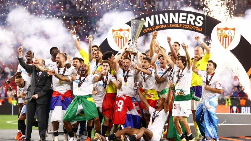 VOV.VN - Sevilla đả bại AS Roma với tỷ số 4-1 trên chấm luân lưu định mệnh sau khi hai đội hòa nhau 1-1 ở hai hiệp chính và hai hiệp phụ. Đây là lần thứ 7 Sevilla đăng quang Europa League trong lần thứ 7 giành quyền vào chơi trận chung kết giải đấu này.