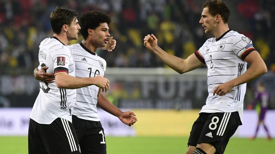 VOV.VN - ĐT Đức đã có trận đấu vất vả hơn dự kiến khi phải nhờ đến những bàn thắng của các cầu thủ thuộc biên chế Bayern Munich - Gnabry và Muller mới có thể lội ngược dòng đánh bại Romania với tỷ số 2-1 ở vòng loại World Cup 2022.