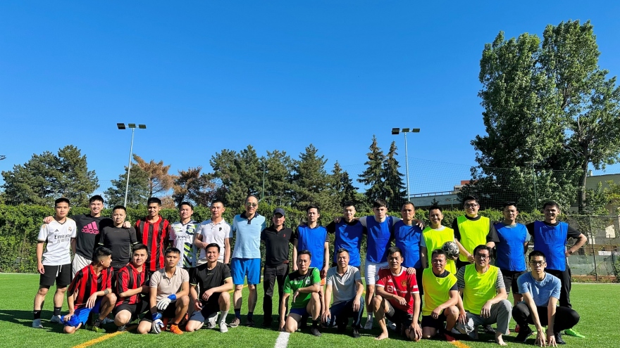 VOV.VN - Tại Công viên Lacul Tei, thủ đô Bucharest, Đại sứ quán Việt Nam tại Romania đã phối hợp cùng Hội người Việt Nam và các hội đoàn người Việt tại Romania tổ chức mít tinh và nhiều hoạt động thể thao chào mừng Ngày giải phóng Miền Nam, thống nhất đất nước (30/4/1975-30/4/2024), Ngày Quốc tế Lao động và 70 năm chiến thắng Điện Biên Phủ.