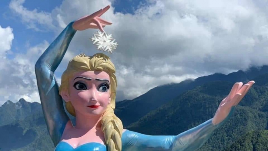 VOV.VN - Mới đây, mạng xã hội xuất hiện một số hình ảnh chụp bức tượng nữ hoàng băng giá Elsa (nhân vật hoạt hình) được đặt tại một khu du lịch ở thị xã Sa Pa (Lào Cai).