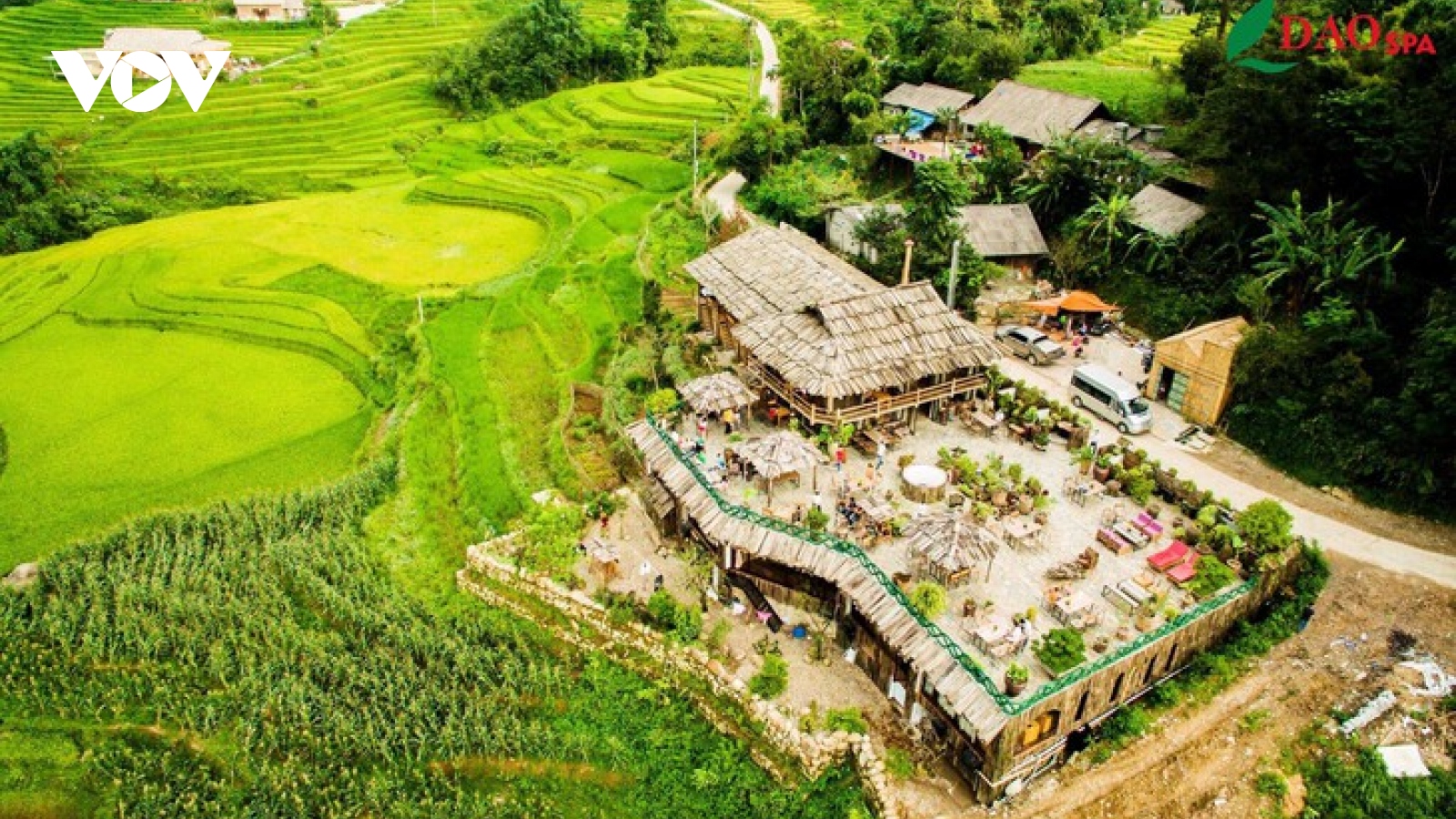 VOV.VN - Ngồi bất cứ đâu trong khuôn viên Lá Dao Spa & Coffee House, du khách đều có thể ngắm nhìn các thửa ruộng bậc thang, những áng mây trắng trôi bồng bềnh trên nền trời xanh trong.