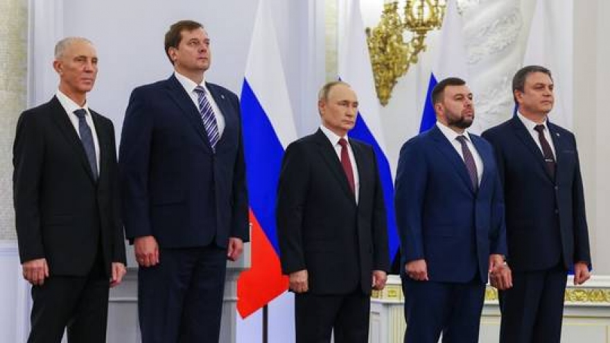 VOV.VN - Điện Kremlin thông báo Tổng thống Nga Vladimir Putin ngày 30/9 sẽ tổ chức lễ ký kết thỏa thuận sáp nhập các vùng lãnh thổ mới từ Ukraine. Sau buổi lễ, ông Putin sẽ có bài phát biểu quan trọng và gặp lãnh đạo của 4 khu vực sắp được sáp nhập vào lãnh thổ Nga.