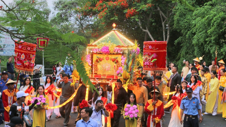 Hàng ngàn du khách và người dân rước tượng Bà Chúa Xứ Núi Sam ở An Giang
