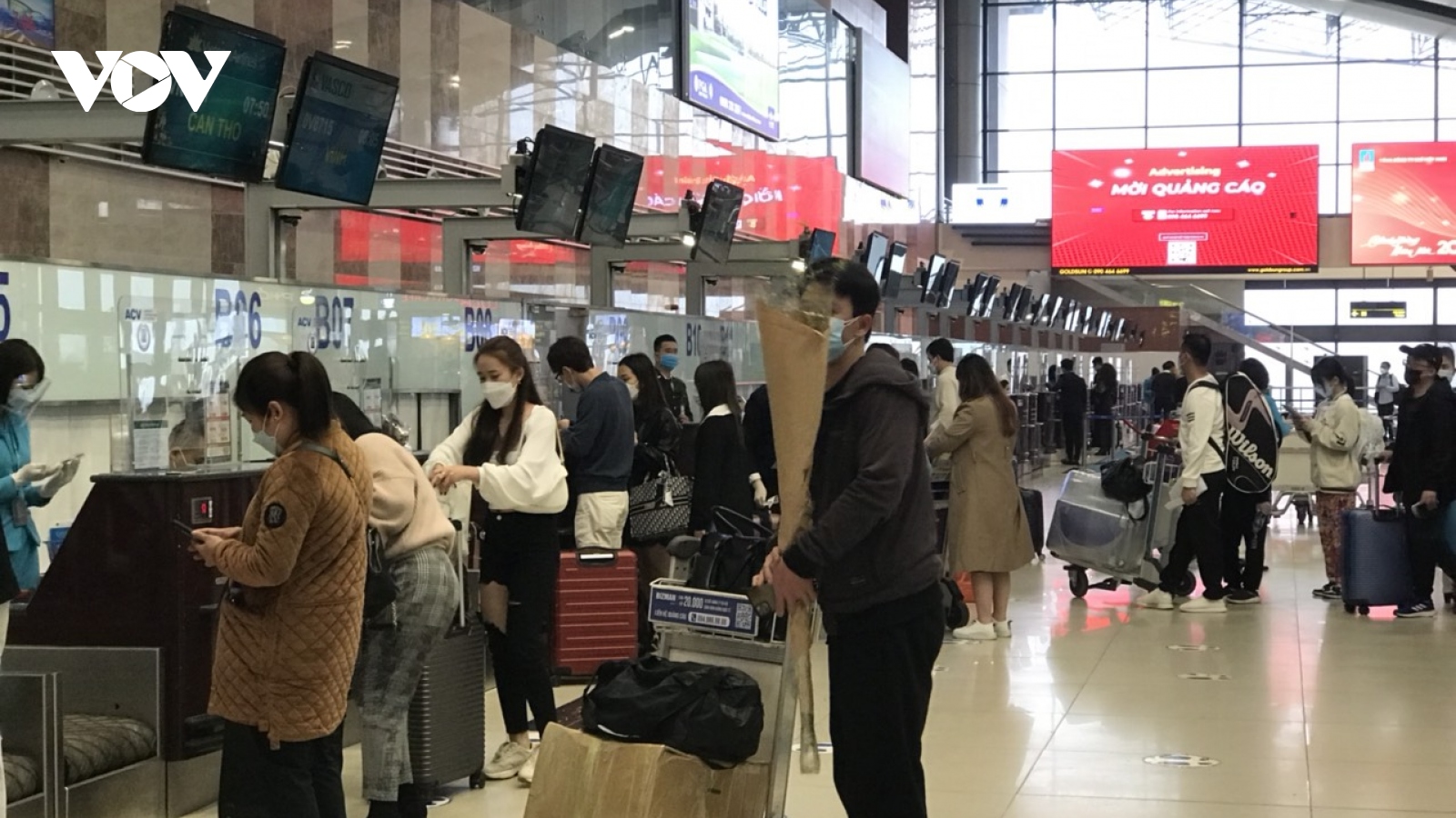 Nhân viên sân bay Nội Bài tận tình phục vụ hành khách về quê đón Tết