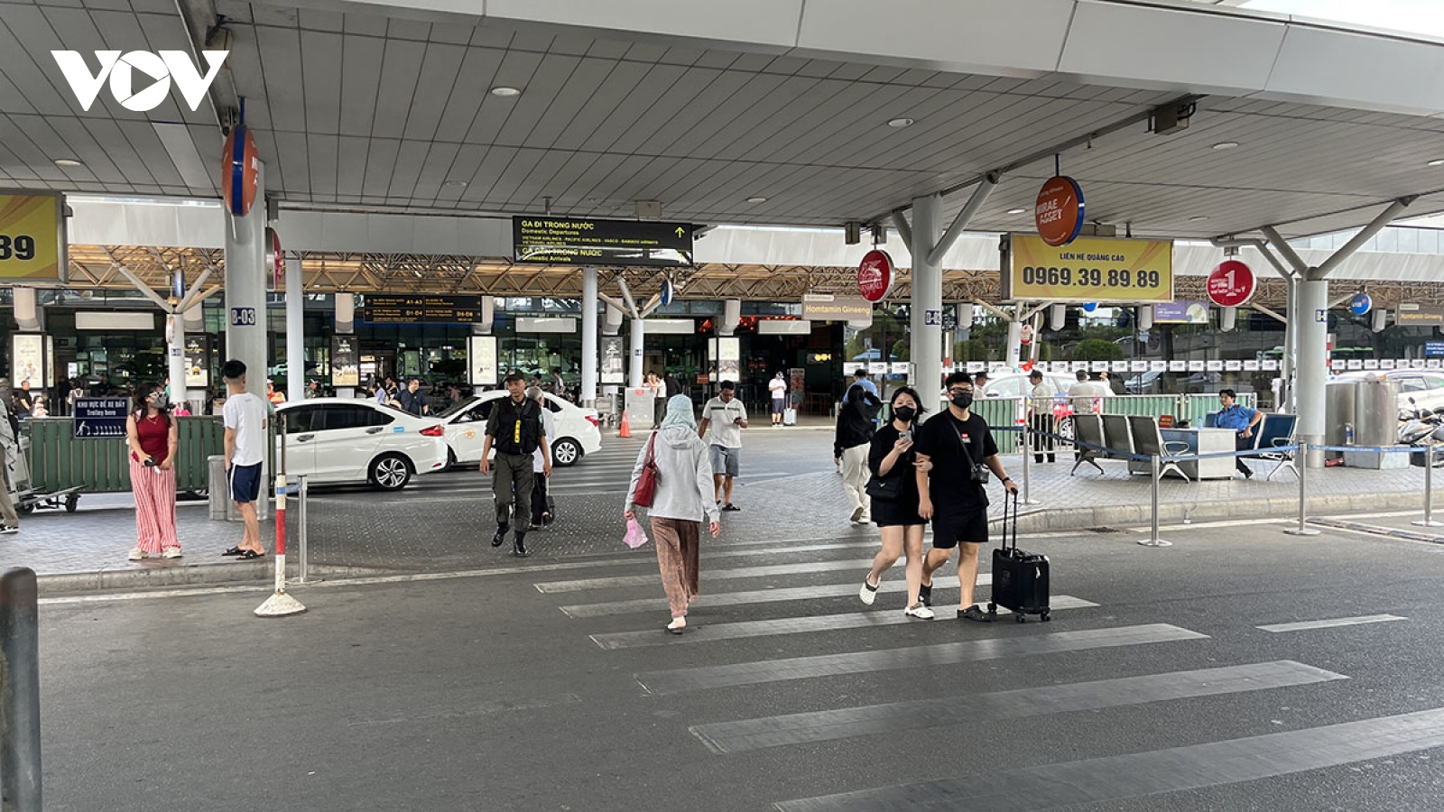 VOV.VN - Ngày nghỉ lễ thứ 2, khách bay quốc nội qua nhà ga T2 Cảng hàng không Quốc tế Nội Bài đã giảm tương đối, trong khi lượng khách bay quốc tế đến ga T1 lại tấp nập.