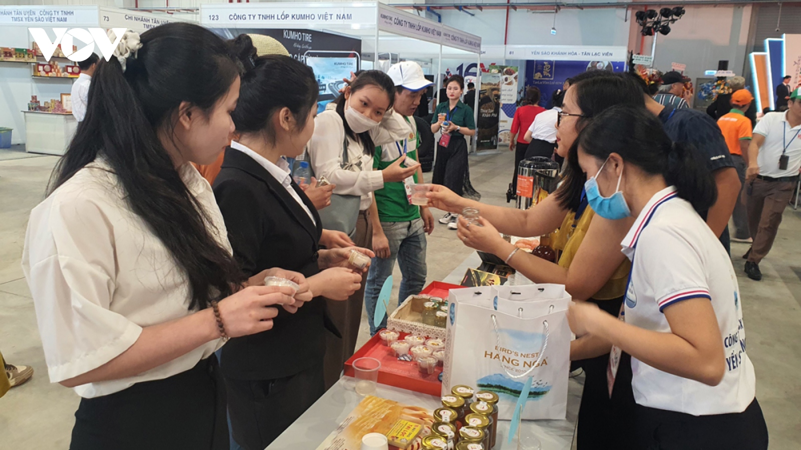 VOV.VN - Triển lãm có hơn 150 doanh nghiệp, đơn vị, hợp tác xã tham gia trưng bày giới thiệu sản phẩm nông sản, thực phẩm chế biến, sơn mài, gốm sứ, các sản phẩm đạt tiêu chuẩn OCOP...