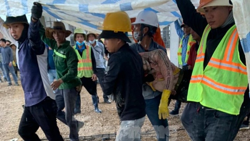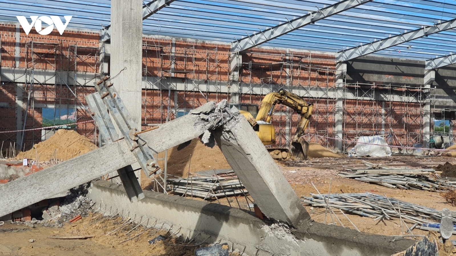 VOV.VN - Sau vụ sập tường đang thi công tại nhà máy chế biến thực phẩm của Công ty TNHH Một thành viên Savvy Seafood Việt Nam tại khu Nhơn Bình, thị xã An Nhơn, tỉnh Bình Định làm 5 người chết, 6 người bị thương, thêm một bức tường dài khoảng 20m, cao 2,5m trong công trình này bị sập.
