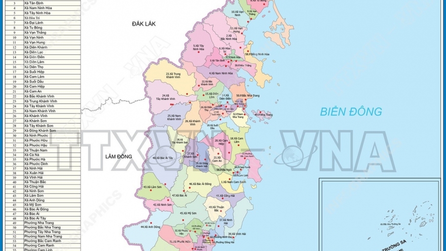 Thay mặt Ủy ban Thường vụ Quốc hội, Chủ tịch Quốc hội Trần Thanh Mẫn ký Nghị quyết số 1667/NQ-UBTVQH15 về việc sắp xếp các đơn vị hành chính cấp xã của tỉnh Khánh Hòa năm 2025. Nghị quyết có hiệu lực từ 16/6/2025. Theo đó, sau khi sắp xếp, Khánh Hòa có 65 đơn vị hành chính cấp xã, gồm 48 xã, 16 phường và 1 đặc khu.