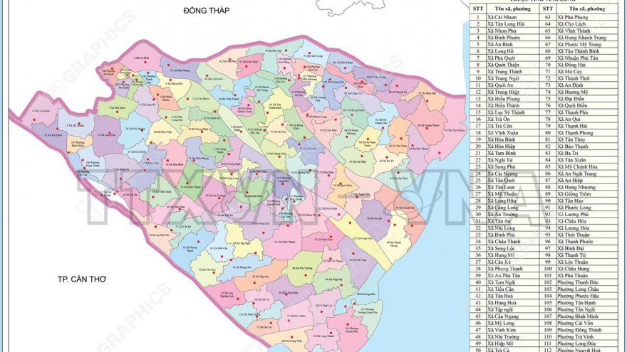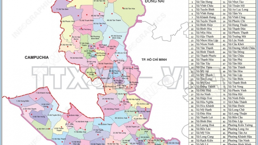 Bản đồ chi tiết 96 đơn vị hành chính cấp xã của Tây Ninh từ ngày 16/6/2025