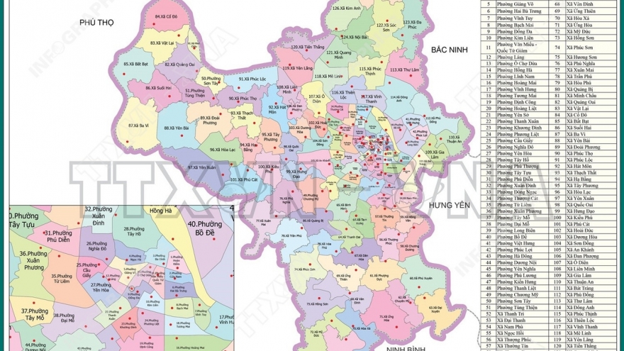 Bản đồ chi tiết 126 đơn vị hành chính cấp xã của Thủ đô Hà Nội từ ngày 16/6/2025