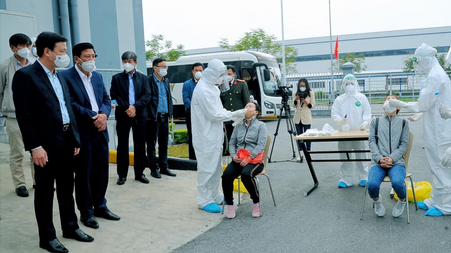 VOV.VN - Hôm nay (14/2), mùng 3 Tết, Ban Chỉ đạo phòng chống dịch Covid-19 tỉnh Hải Dương tổ chức lấy mẫu xét nghiệm cho gần 1.500 công nhân tại các khu công nghiệp ở huyện Cẩm Giàng.