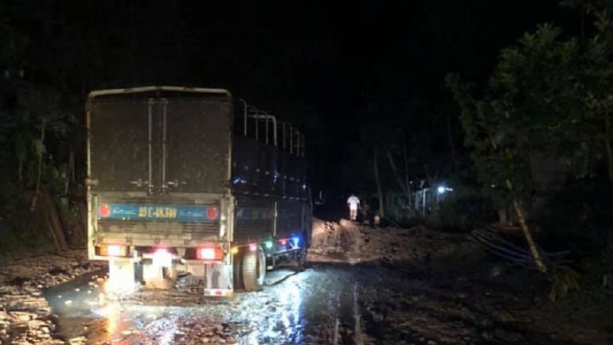VOV.VN -Tại bản Suối Khem, xã Phiêng Luông, huyện Mộc Châu, tỉnh Sơn La vừa xảy vụ sạt lở đất đá từ trên đồi xuống, khiến 1 chiếc ô tô tải bị hư hỏng nặng.
