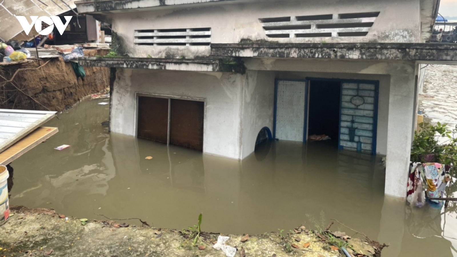 VOV.VN - Tối 16/10, một đoạn bờ sông Thạch Hãn đoạn qua thôn Như Lệ, xã Hải Lệ, thị xã Quảng Trị, tỉnh Quảng Trị bất ngờ sạt lở, một nhà dân bị đổ sập xuống sông làm 1 người tử vong.