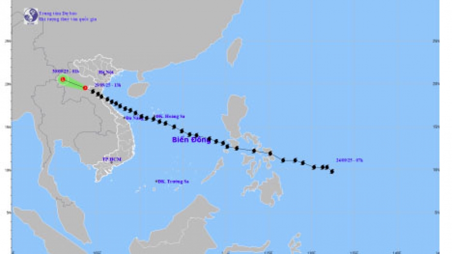 VOV.VN - Theo Trung tâm dự báo khí tượng thủy văn quốc gia, trưa nay (29/9), bão số 10 đã di chuyển sang khu vực Thượng Lào và suy yếu thành áp thấp nhiệt đới. Đây là tin cuối cùng về cơn bão số 10