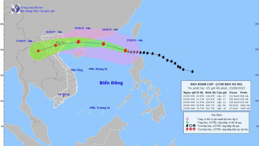VOV.VN - Cơ quan khí tượng cảnh báo, siêu bão số 9 đang hoạt động trên khu vực phía Đông Bắc Biển Đông với sức gió giật trên cấp 17. Dự báo từ ngày 24-26/9, các tỉnh Bắc Bộ và Bắc Trung Bộ hứng chịu gió mạnh, mưa rất to, nguy cơ ngập úng, lũ quét và sạt lở đất.
