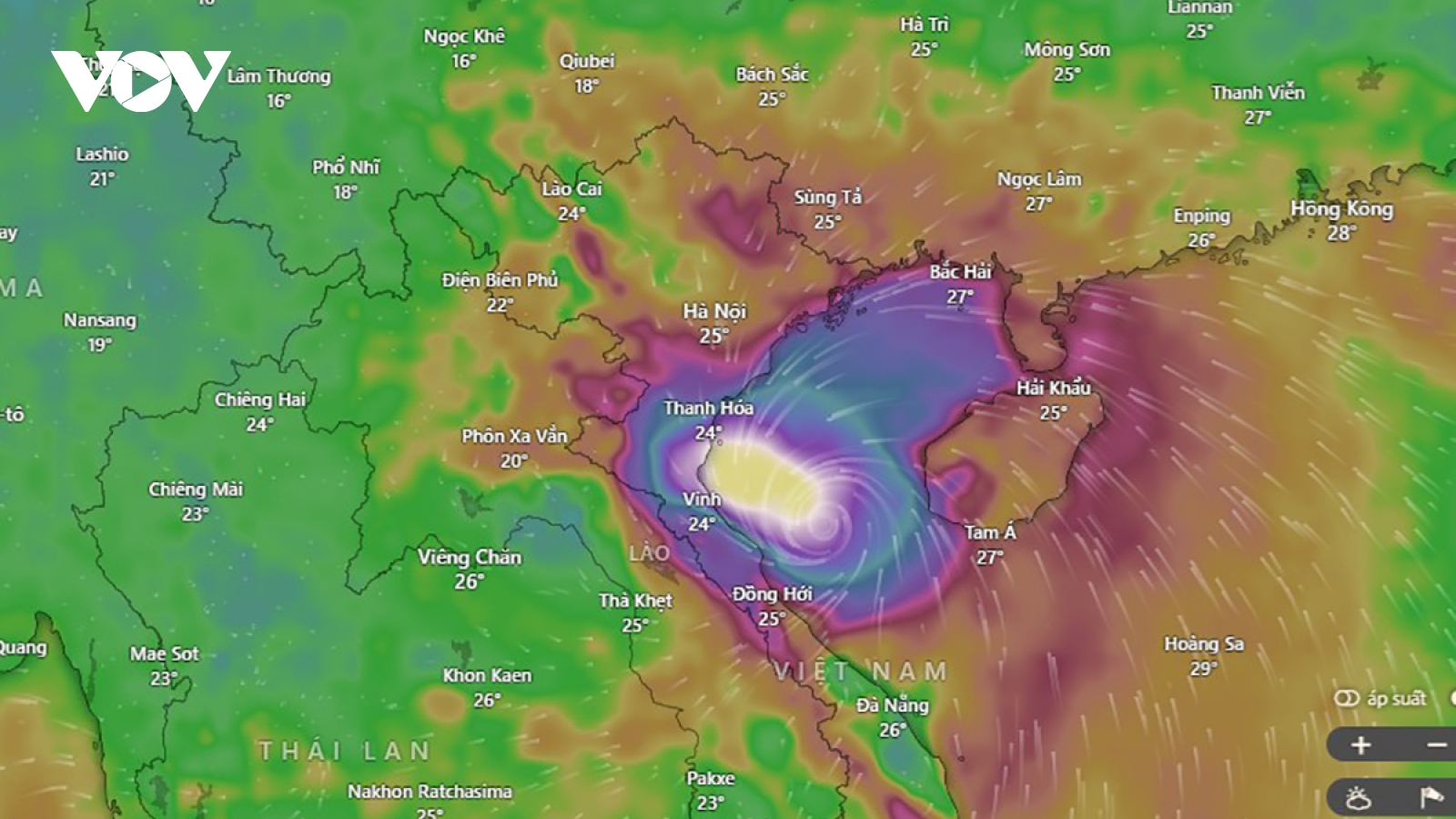 VOV.VN - Từ trưa 25/8 đến hết ngày 26/8, ở khu vực trung du và đồng bằng Bắc Bộ, khu vực Lào Cai, Sơn La và từ Thanh Hóa đến Quảng Trị có mưa lớn diện rộng với lượng mưa phổ biến 100-150mm, cục bộ có nơi trên 250mm; riêng khu vực Thanh Hóa đến Bắc Quảng Trị có mưa to đến rất to với lượng mưa phổ biến 200-400mm, cục bộ có nơi trên 600mm.