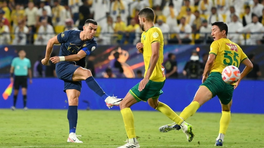 VOV.VN - Cristiano Ronaldo kiến tạo cho Talisca ghi bàn mở tỷ số, khởi đầu cho chiến thắng 3-1 trước Al Feiha và giúp Al Nassr vươn lên đứng nhì BXH giải VĐQG Saudi Arabia.