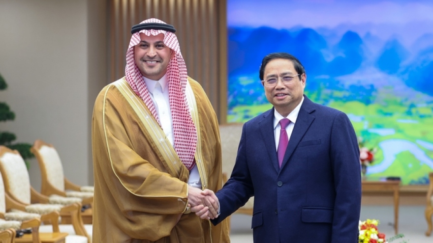 VOV.VN - Chiều 29/3, tại Trụ sở Chính phủ, Thủ tướng Chính phủ Phạm Minh Chính đã tiếp Đại sứ đặc mệnh toàn quyền Saudi Arabia tại Việt Nam Mohammed Bin Ismaeil A. Dahlwy nhân dịp nhận nhiệm vụ công tác tại Việt Nam.