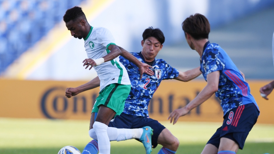 VOV.VN - Trong tình thế thiếu người ở hơn 10 phút cuối trận, U23 Nhật Bản phải chia điểm với U23 Saudi Arabia trong trận cầu có tỷ số 0-0. Kết quả này khiến cả Nhật Bản và Saudi Arabia đều chưa thể có vé vào tứ kết.