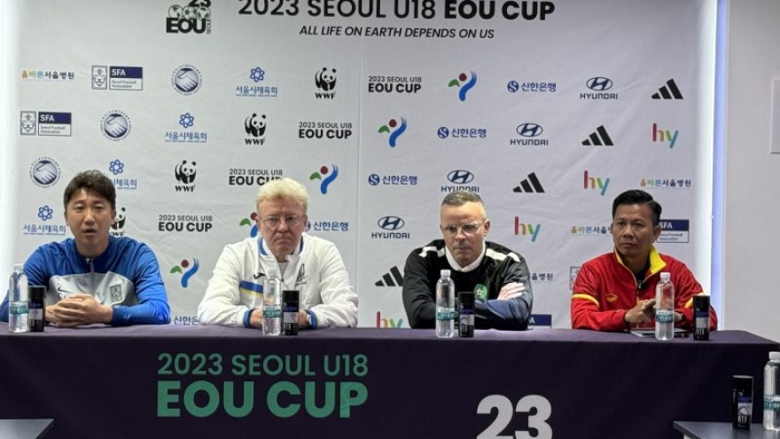 VOV.VN - Phát biểu tại họp báo trước giải giao hữu quốc tế U18 Seoul Eou Cup 2023, HLV Hoàng Anh Tuấn hy vọng U18 Việt Nam sẽ tạo bất ngờ trước các đối thủ mạnh.