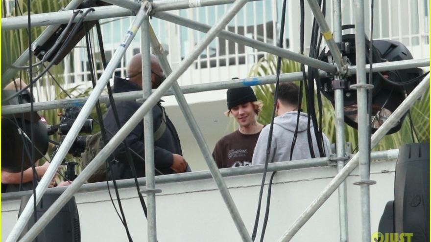 VOV.VN - Justin Bieber mặc đồ giản dị, vui vẻ trò chuyện, bàn bạc công việc cùng ekip trong buổi tập luyện chuẩn bị cho show diễn NYE sắp tới của mình.