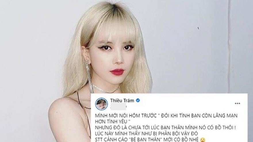 VOV.VN - Trên trang cá nhân, Thiều Bảo Trâm bất ngờ đăng tải dòng trạng thái với hàm ý “cảnh cáo” 1 người bạn thân. Nguồn cơn là vì người này đã có người yêu và liên tục “bỏ rơi” nữ ca sĩ.