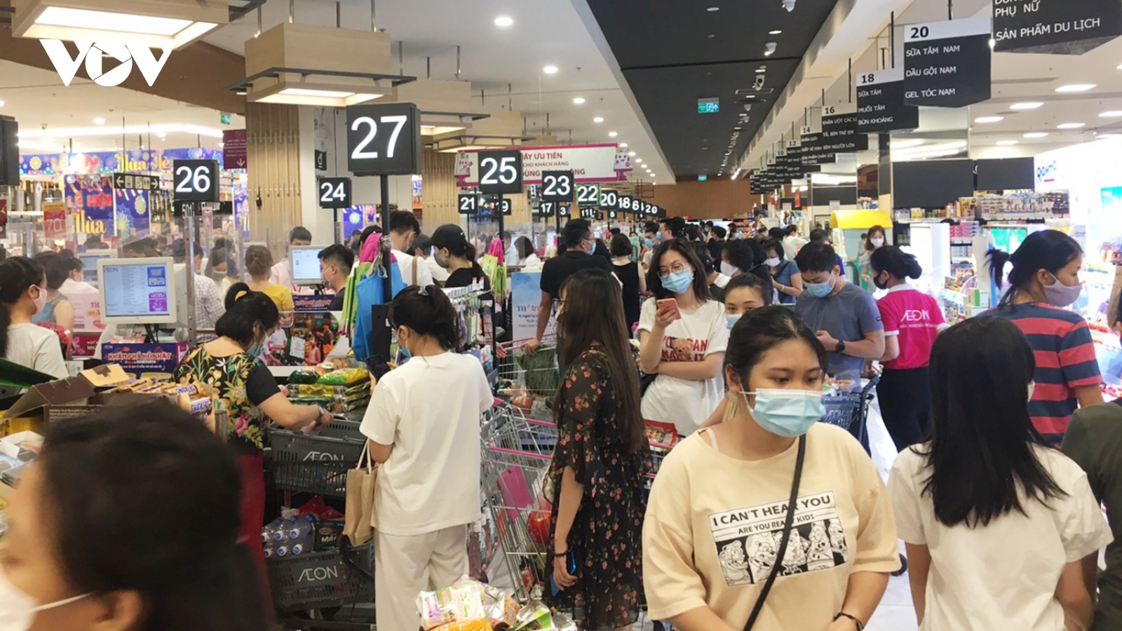 VOV.VN - Hôm nay (14/7) tại một số siêu thị, cửa hàng tiện lợi trên địa bàn TP.HCM có tình trạng người dân xếp hàng, tập trung đông để mua trữ thực phẩm.