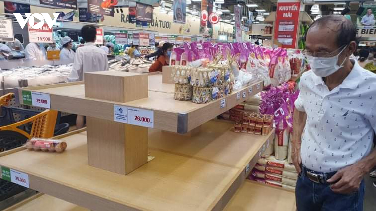VOV.VN - Lượng khách mua sắm tại chợ, siêu thị, cửa hàng tiện lợi đã giảm, tuy nhiên, có một số thời điểm, một số điểm bán thiếu cục bộ các mặt hàng như trứng, rau...