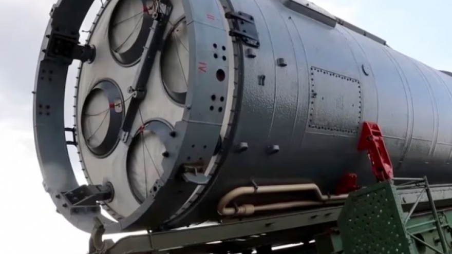 VOV.VN - Lực lượng tên lửa Nga đã đưa một tên lửa đạn đạo xuyên lục địa được trang bị phương tiện bay siêu thanh Avangard có khả năng mang đầu đạn hạt nhân vào bệ phóng.
