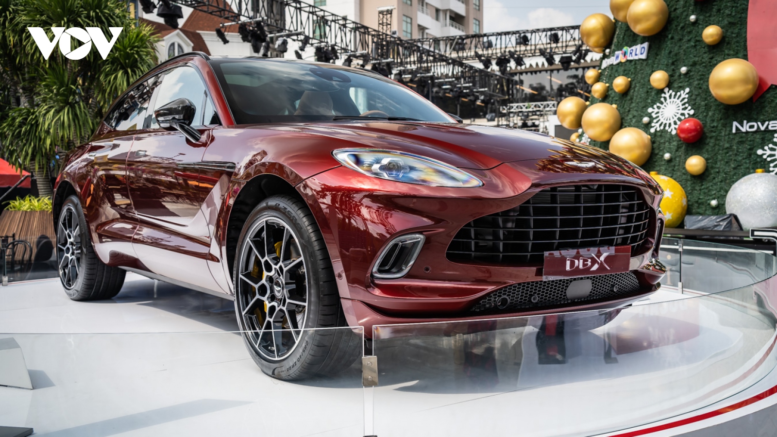 VOV.VN - Chiếc Aston Martin DBX thứ hai tại Việt Nam nổi bật hơn với màu sơn đỏ mận Liquid Crimson, cùm phanh vàng kết hợp nhiều chi tiết được làm bằng sợi carbon, giá bán 16,68 tỷ đồng.