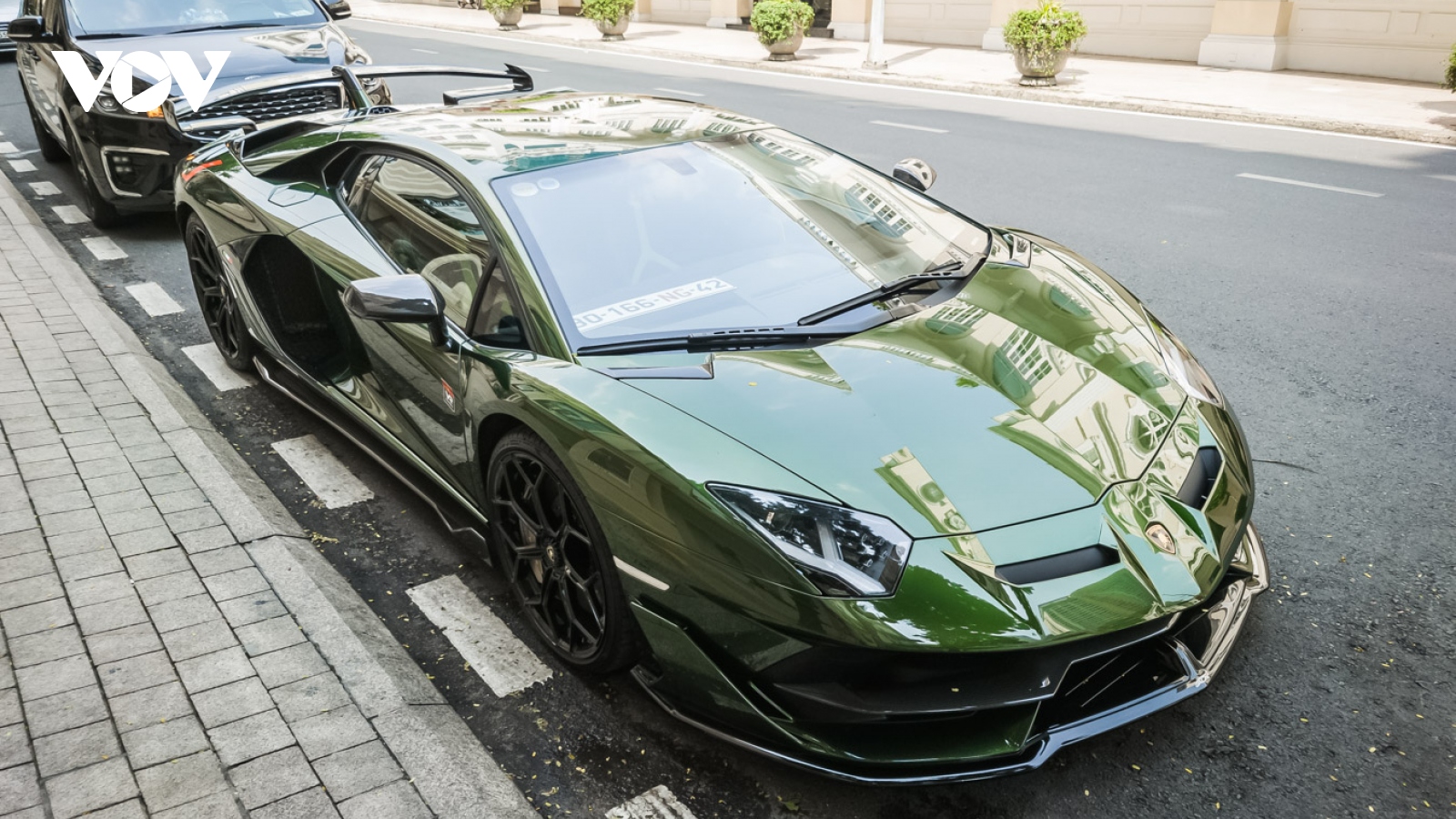 VOV.VN - Đây là chiếc Lamborghini Aventador SVJ coupe thứ 3 tại Việt Nam. Xe sở hữu màu sơn ngoại thất Verde Ermes độc đáo, kết hợp cùng nội thất đen/xanh lá nổi bật.