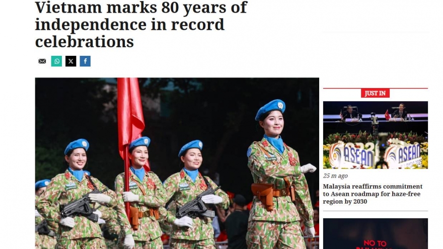 VOV.VN - Truyền thông các nước Thái Lan, Singapore và Malaysia ngày 2/9 đã đưa tin đậm nét về Lễ diễu binh, diễu hành và các hoạt động trong khuôn khổ kỷ niệm 80 năm Quốc khánh của Việt Nam.