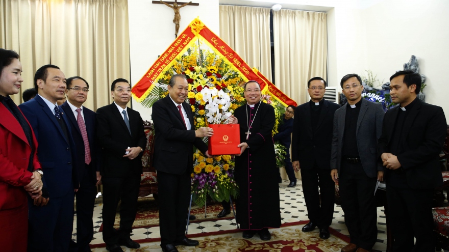 VOV.VN - Phó Thủ tướng Trương Hòa Bình chúc các vị chức sắc, tu sĩ trong Tòa Tổng Giám mục, toàn thể đồng bào Công giáo Hà Nội và Ủy ban Đoàn kết Công giáo Việt Nam đón mừng Lễ Giáng sinh năm 2020 an lành, hạnh phúc, nhận được nhiều hồng ân của Thiên Chúa.