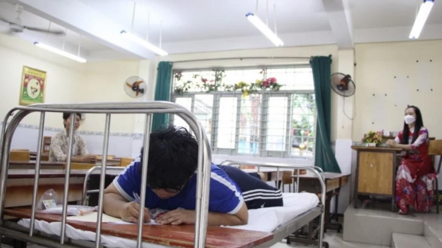 VOV.VN - Lý do Phong được nằm riêng một phòng làm bài là do trước ngày thi, em bị mổ áp xe da ở mông, vết thương còn quá mới nên em không thể ngồi làm bài được.