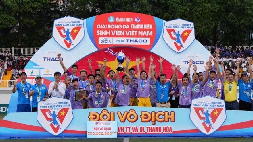 VOV.VN - Sau hai tuần thi đấu tranh tài, chiều 16/3, Giải bóng đá Thanh Niên sinh viên Việt Nam lần III - 2025 Cúp THACO đã khép lại với trận chung kết kịch tính giữa Trường ĐH Văn hóa – Thể thao – Du lịch Thanh Hóa và Trường ĐH Thể dục thể thao Đà Nẵng. Và chức vô địch đã thuộc về đội bóng tân binh đến từ Thanh Hóa.