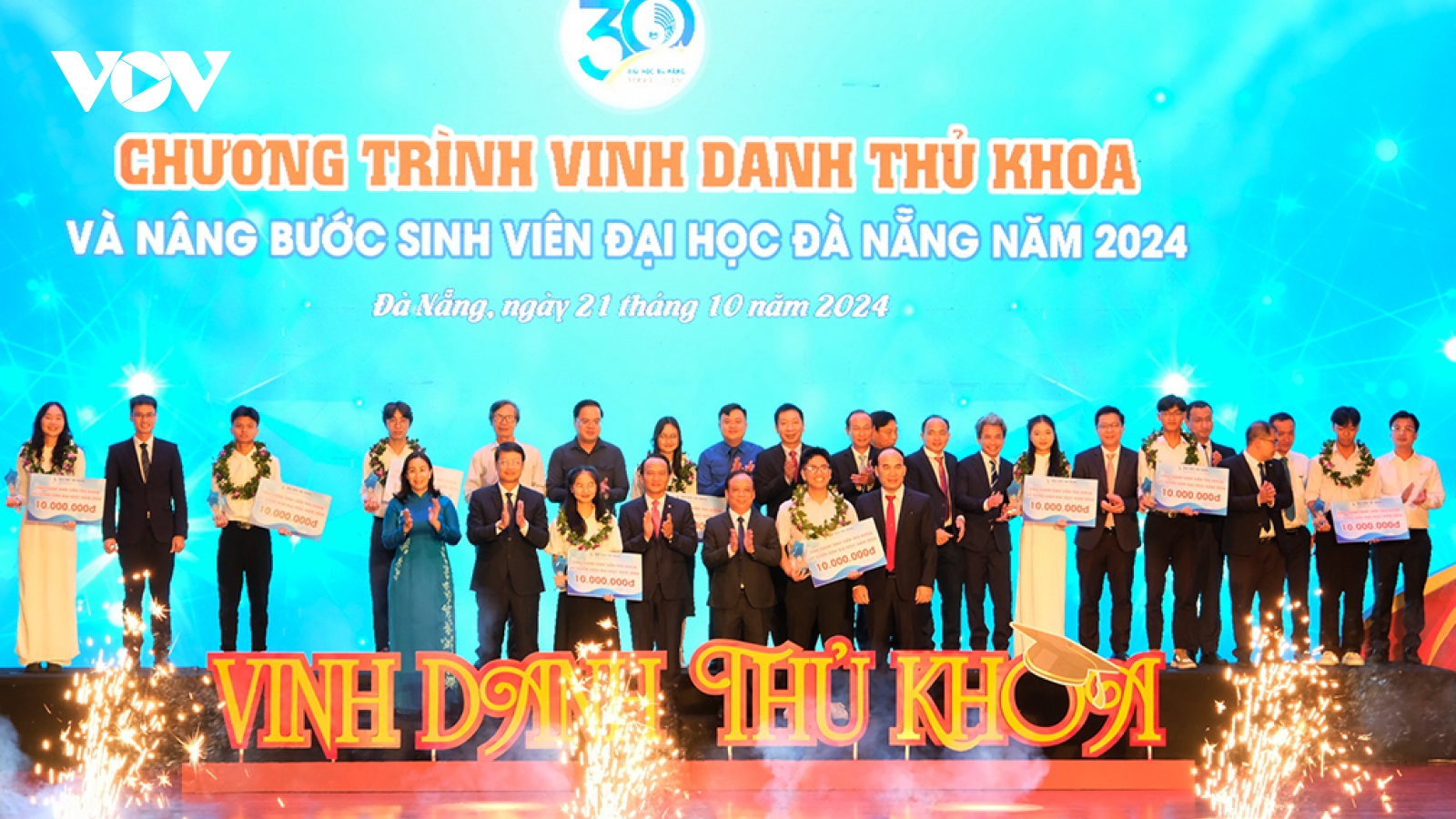 VOV.VN - Tối nay (21/10), tại Nhà hát Trưng Vương, Đại học Đà Nẵng tổ chức chương trình Vinh danh thủ khoa và nâng bước sinh viên Đại học Đà Nẵng năm 2024. Dự Chương trình có đại diện lãnh đạo thành phố Đà Nẵng và gần 500 sinh viên đại diện cho hơn 15.000 tân sinh viên khóa mới của Đại học Đà Nẵng.