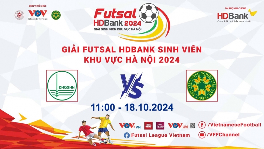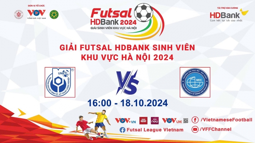 VOV.VN - Trực tiếp trận đấu Đại học Quốc gia Hà Nội vs Đại học Kinh tế - Kỹ thuật Công nghiệp, bán kết giải Futsal HDBank sinh viên khu vực Hà Nội 2024 diễn ra lúc 16h ngày 20/10.