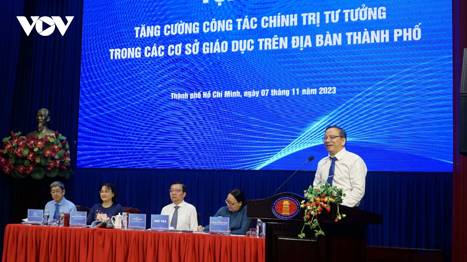 VOV.VN - Sáng nay (5/11), Đại hội Hội sinh viên Việt Nam TP.HCM lần thứ 7 nhiệm kỳ 2023-2028 đã diễn ra phiên trọng thể. Tham dự có nguyên Phó Chủ tịch nước Trương Mỹ Hoa, lãnh đạo Thành uỷ, Trung ương Đoàn, Trung ương Hội Sinh viên Việt Nam và 459 đại biểu.