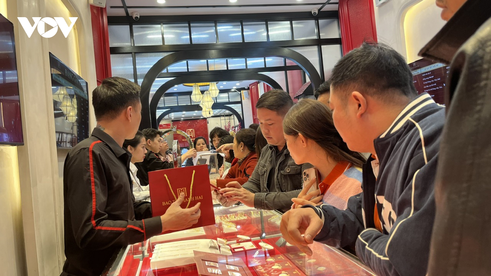 VOV.VN - Từ 4h sáng mùng 10 tháng Giêng, biển người đội mưa đổ về phố vàng Trần Nhân Tông (Hà Nội) xếp hàng chờ mua vàng. Dù giá vàng giảm còn 185 triệu đồng/lượng, nhu cầu mua lấy may vẫn tăng đột biến. Các cửa hàng đồng loạt mở cửa sớm từ 6h sáng để phục vụ nhu cầu tăng đột biến trong ngày Vía Thần Tài.
