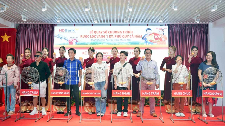 VOV.VN - Ngay trước thềm đại lễ kỷ niệm 50 năm Ngày Giải phóng miền Nam, thống nhất đất nước, HDBank mang đến niềm vui bất ngờ cho 16 khách hàng trên cả nước thông qua lễ quay số cuối kỳ chương trình “Rước lộc vàng 1 ký – Phú quý cả năm”; trong đó, một khách hàng may mắn nhất đã trở thành chủ nhân của giải đặc biệt 1 ký vàng SJC.