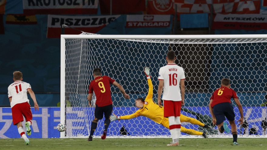 VOV.VN - Cú đá phạt đền thành công của Emil Forsberg ở phút 77 giúp Thụy Điển giành chiến thắng 1-0 trước Slovakia và tạm thời dẫn đầu bảng E - EURO 2021.