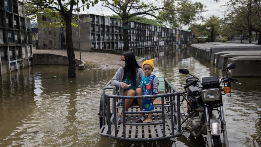 VOV.VN - Cơ quan dự báo thời tiết của Philippines (PAGASA) ngày 31/10 đã nâng mức báo động lên cấp 3 đến cấp 4 và sơ tán hàng ngàn dân khi bão Goni chuẩn bị đổ bộ vào nước này.
