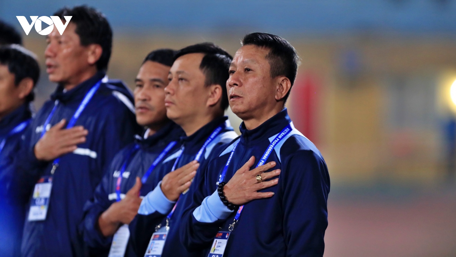 VOV.VN - HLV Văn Sỹ Sơn đưa Đình Bắc "trở lại mặt đất" trong buổi họp báo sau trận Quảng Nam thua 1-3 trước Hà Nội FC tại vòng 13 V-League 2023/2024 trên sân Hàng Đẫy.