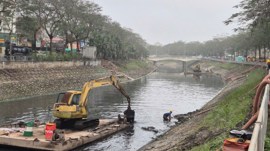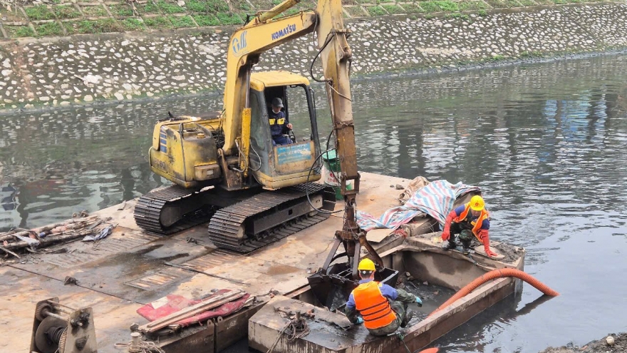 VOV.VN - Từ đầu tháng 2/2025 đến nay, không khí trên công trường nạo vét sông Tô Lịch luôn tất bật, hối hả với mục tiêu đến hết tháng 4 năm nay sẽ nạo vét khoảng 50.000 m3 bùn dưới lòng sông Tô Lịch. Việc nạo vét dự kiến hoàn thành trước mùa mưa năm nay, góp phần cải tạo sông Tô Lịch, tạo cảnh quan xanh, sạch, đẹp.