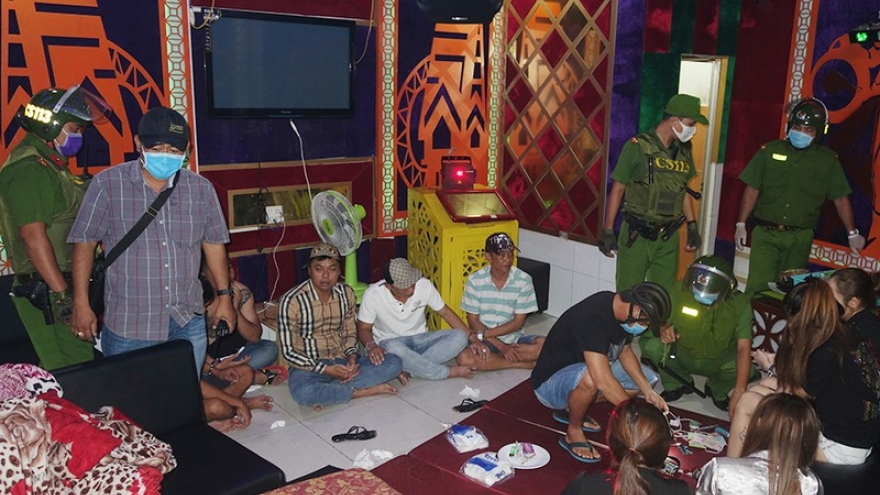 VOV.VN - Sau khi đi dự đám cưới của một người bạn về, 5 đối tượng nam đã cùng nhau đi hát karaoke, sau đó gọi 5 nhân viên nữ vào phục vụ “bay, lắc” cùng.