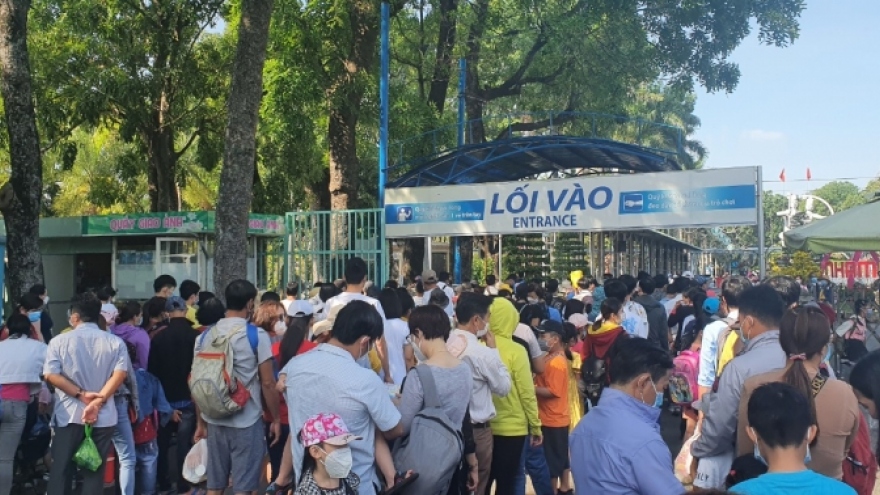 VOV.VN - Trong ngày 4/2 – mùng 4 Tết, đa số các điểm vui chơi, giải trí tại TP.HCM đều nhộn nhịp, chật kín người, du khách đổ về rất đông ngay từ sáng sớm.