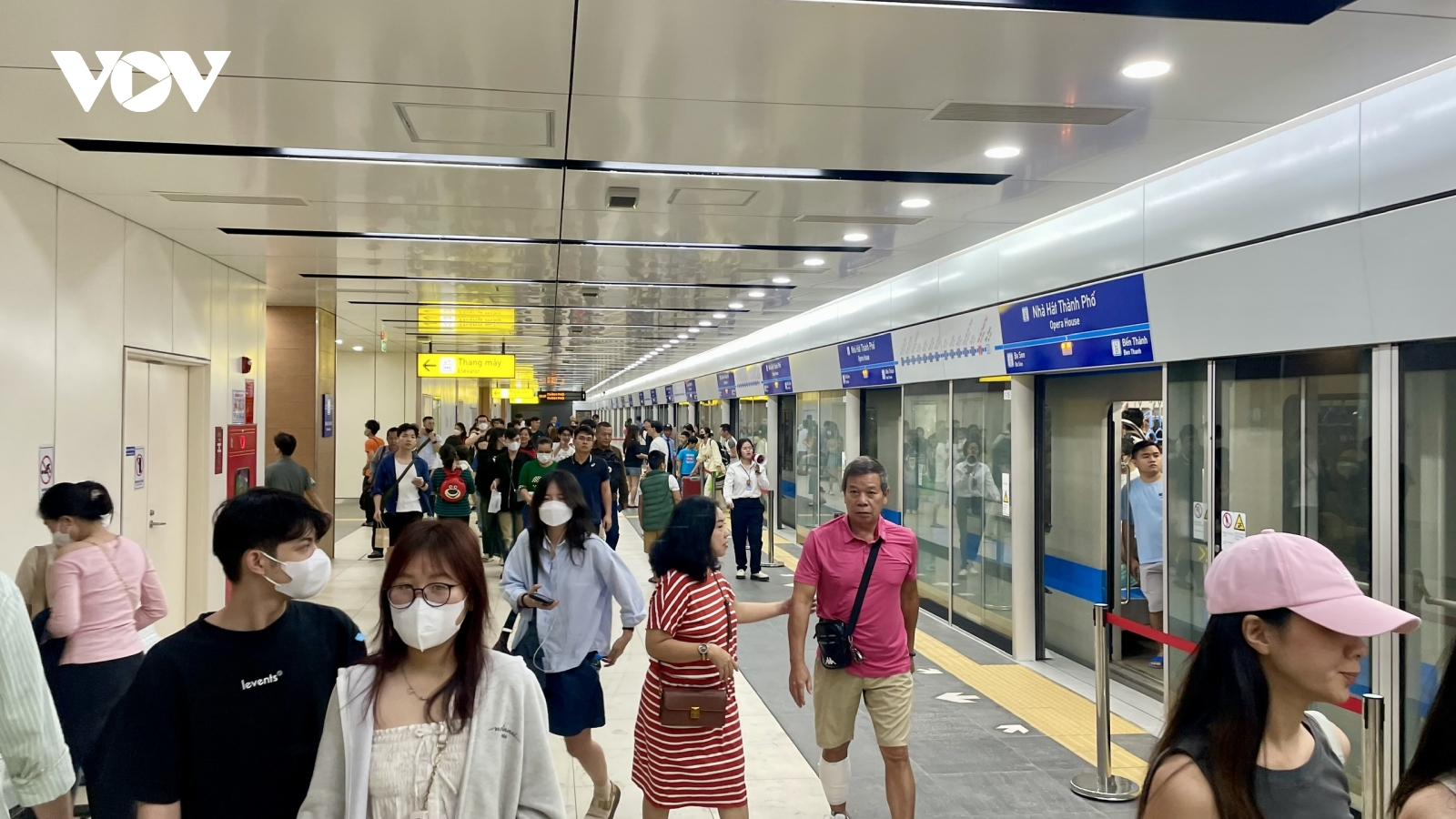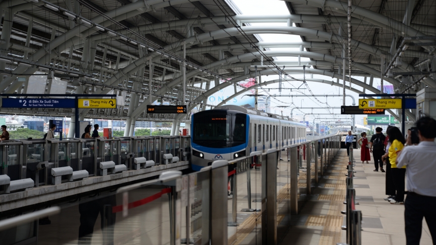 VOV.VN - Để phục vụ nhu cầu của người dân và du khách, trong ngày 31/12/2024, metro 1 (Bến Thành – Suối Tiên ) sẽ kéo dài thời gian hoạt động đến 23h thay vì kết thúc lúc 22h như thường ngày. Đặc biệt, từ 0h30 – 2h ngày 1/1 sẽ có 14 chuyến tàu phục vụ nhu cầu người dân sau khi vui đón Tết.