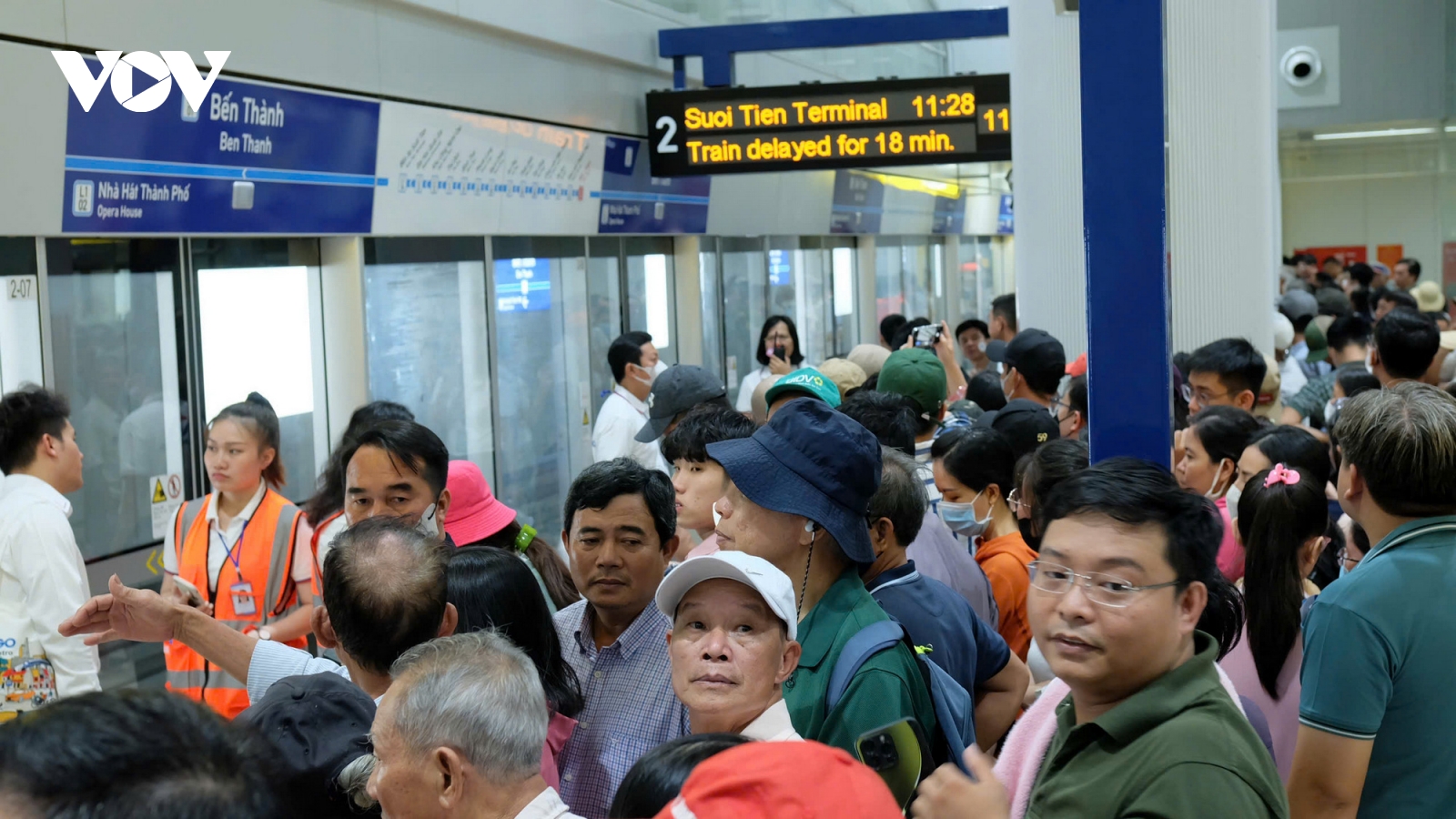 VOV.VN - Trong ngày đầu tiên phục vụ, các đoàn tàu metro đông kín người, các nhà ga đều có hàng dài người xếp hàng để vào trải nghiệm. Tính đến 16h đã có 78 chuyến tàu với gần 55.000 lượt khách.