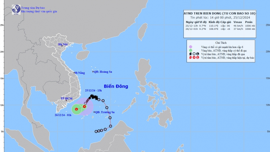 VOV.VN - Theo Trung tâm Dự báo Khí tượng Thủy văn quốc gia, tối 30/8, áp thấp nhiệt đới đã suy yếu thành một vùng áp thấp trên khu vực Trung Lào. Vào 22h, vị trí trung tâm khoảng 18,1°N; 104,3°E, trên Trung Lào. Sức gió mạnh nhất ở trung tâm vùng áp thấp dưới cấp 6.